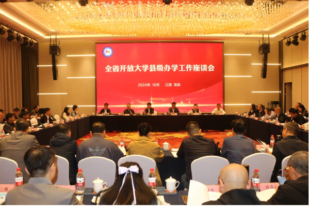 为凝聚系统合力,共谋开大发展,10月24日,11家设区市开放大学、24家县级开放学院的领导干部齐聚一堂,共同参加全省开放大学县级办学工作座谈会。校党委书记贺瑞虎,校党委副书记、校长黄平槐,校党委委员、副校长冯豫红出席。龙南市委副书记、市长,经开区党工委副书记、管委会主任彭江闽致辞。校党委委员、党政办公室主任罗军涛,龙南市委教体工委书记、市教育体育局局长郭建龙,发展规划处、教务处、招生就业处相关负责同志参加。黄平槐主持会议。