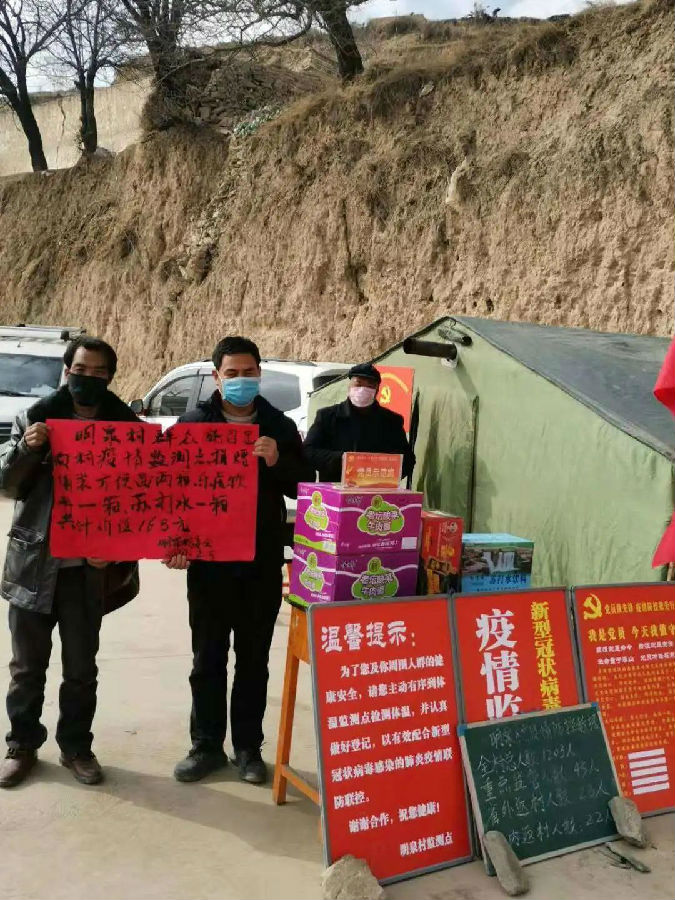 在村庄道路设置的4个监测点上,季三娃严格执行24小时勤务制度,无论昼夜,他都顾大家、舍小家,克服困难、坚守岗位。白天,他带领党员群众和志愿者对本村及过往车辆、人员进行详细登记、测量体温,开展疫情防控宣传。夜里,他不惧刺骨严寒,仍然屹立风中坚守岗位,累了就在帐篷里稍微休息一会儿,然后继续上岗巡视执勤。