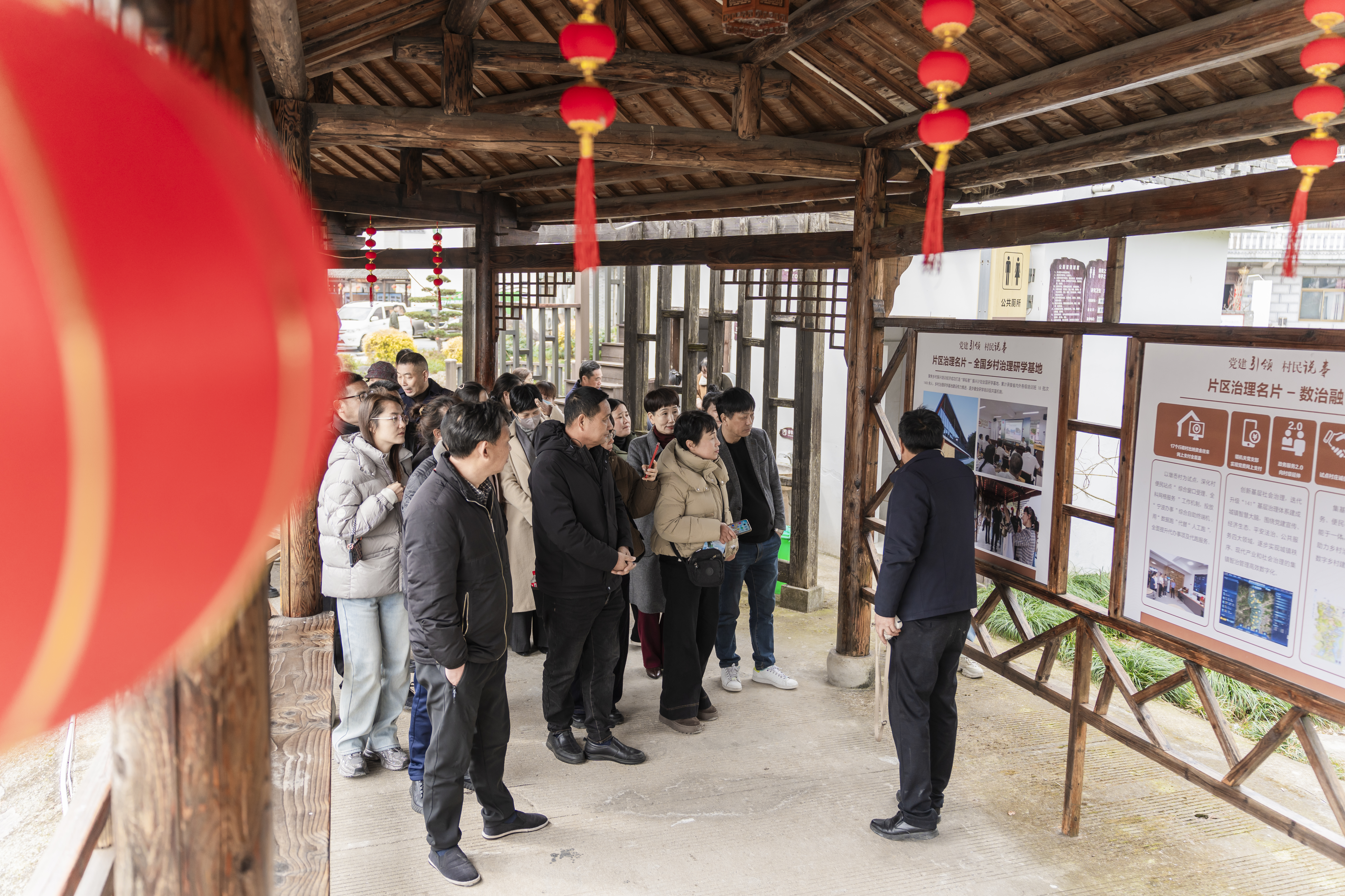 在理论教学后,师生分组开展实地调研。在“党建长廊”,学员们通过图文展板深入了解墩岙村“党建+网格治理”模式,深刻感悟基层党组织在环境整治、矛盾调解中的引领作用;“村民议事厅”内,村干部现场还原“一事一议”民主决策流程,展现基层协商民主的生动实践。