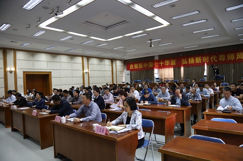 党委书记周继平指出,党的十九届四中全会是在庆祝新中国成立70周年之际、在“两个一百年”奋斗目标的历史交汇点上,召开的一次十分重要的会议。全会对党的十九届三中全会以来中央政治局的工作给予充分肯定。全会审议通过的《中共中央关于坚持和完善中国特色社会主义制度推进国家治理体系和治理能力现代化若干重大问题的决定》,是新时代坚持和完善中国特色社会主义制度、推进国家治理体系和治理能力现代化的政治宣言和行动纲领,为坚定制度自信,实现伟大梦想,提供了根本遵循、指明了正确方向。