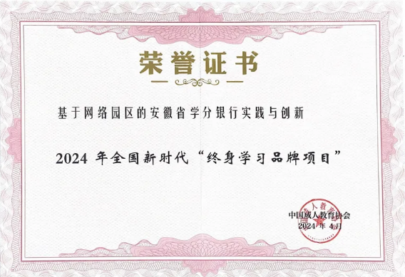 安徽开放大学:安徽省终身教育学分银行荣获2024年全国新时代“终身学习品牌项目”