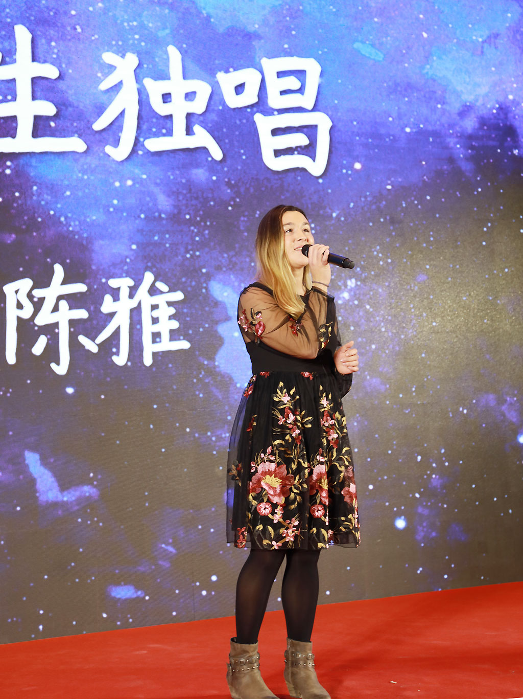 来自俄罗斯联邦的西安汉唐文化网络学院的留学生代表柳芭同学发言。她表示非常荣幸能参加西安汉唐文化网络学院的学习。她认为汉唐华语是一个很好的学习汉语和中国历史文化的途径,网上有许多很棒的课程,让他们提高了汉语水平,了解了更多中国文化。