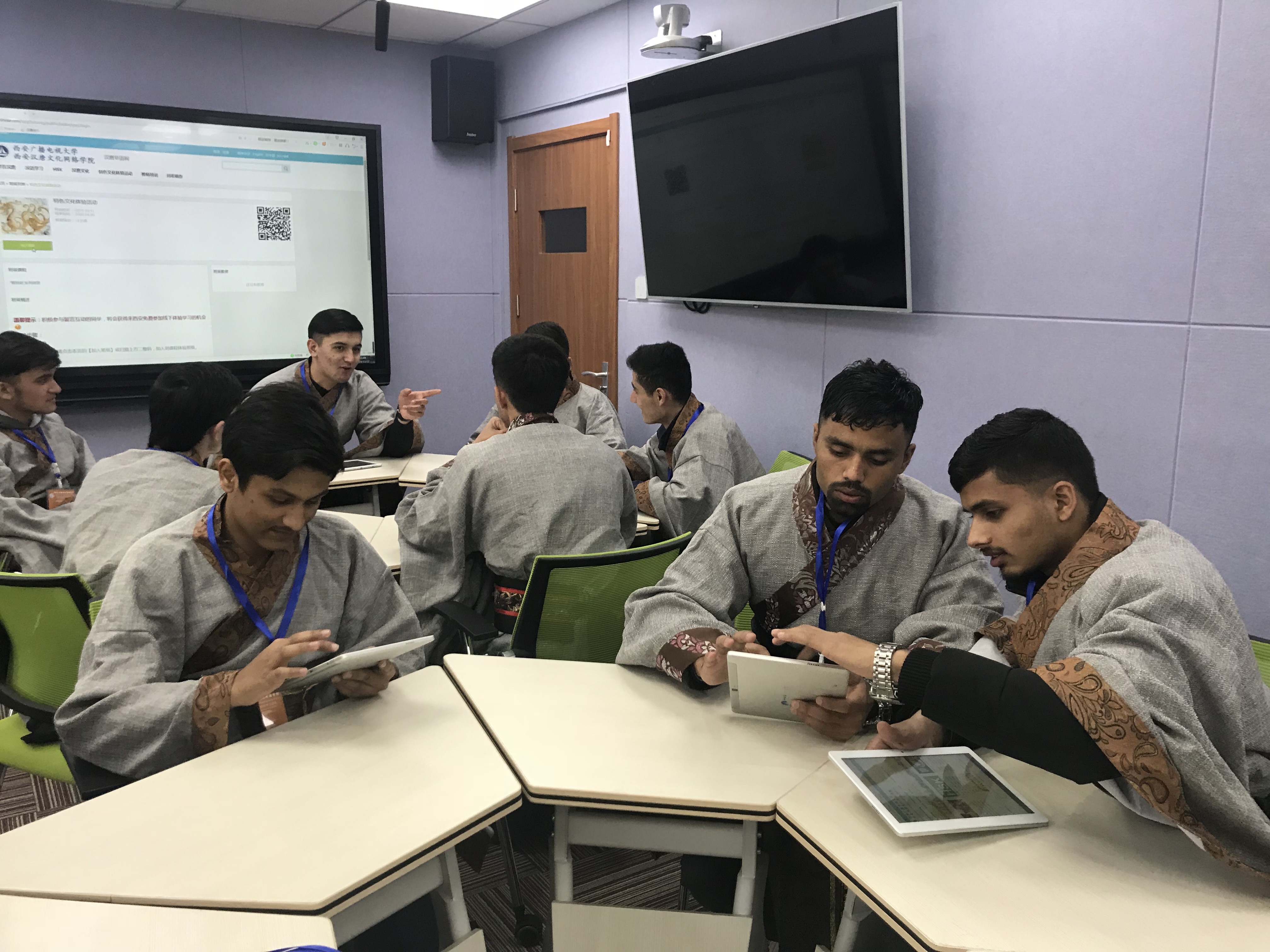 仪式结束后,线上优秀学生以班级为单位在西安电大的智慧教室里,针对西安汉唐文化网络学院网上平台进行了学习交流。学员们纷纷表示,网上学习的模式打破了时空的限制,让他们可以自由地徜徉在汉语文化知识的海洋。