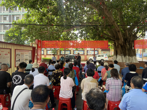 茂盛的大榕树下,一套桌椅,一个话筒,数十张塑料凳,大家围在一起,伴随着清新的晨风,主题教育宣讲通过这种接地气的形式传递到党员干部、居民群众的心坎上,在基层一线落地生根。