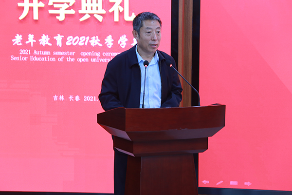 国家开放大学党委副书记刘臣在致辞中肯定了吉林开放大学在老年教育中取得的突破与发展,并对“十四五”期间走好老年教育高质量发展之路提出了要求,要在更高质量、更有效率、更加公平、更可持续、更为安全的发展过程中,把开放大学老年教育打造成为老年朋友的知识学园、生活乐园、精神家园,奋力书写老年教育发展新篇章。