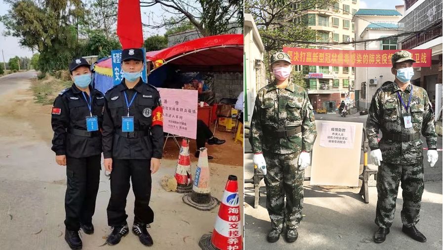 海南分部2013级行政管理(村镇管理方向)专业的陈燕霞和其儿子朱奕煌,以及2017级行政管理(村镇管理方向)专业的高玉龙父子。为抗击疫情,母子、父子同上阵,共同执勤、共同战斗,发放口罩、测量体温、对来往车辆进行登记,疫情排查、防疫知识宣传……