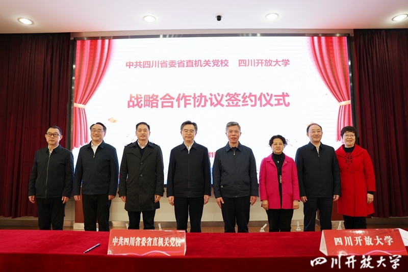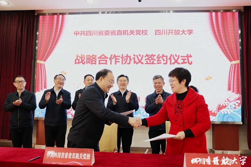 四川省直属机关工作委员会常务副书记、中共四川省委省直机关党校校长王承先,四川开放大学党委书记谭文劲出席签约仪式并致辞。四川开放大学党委副书记、校长杨俊辉主持仪式。中共四川省委省直机关党校副校长苏承祥、四川开放大学副校长吴兆华代表双方在合作协议上签字。