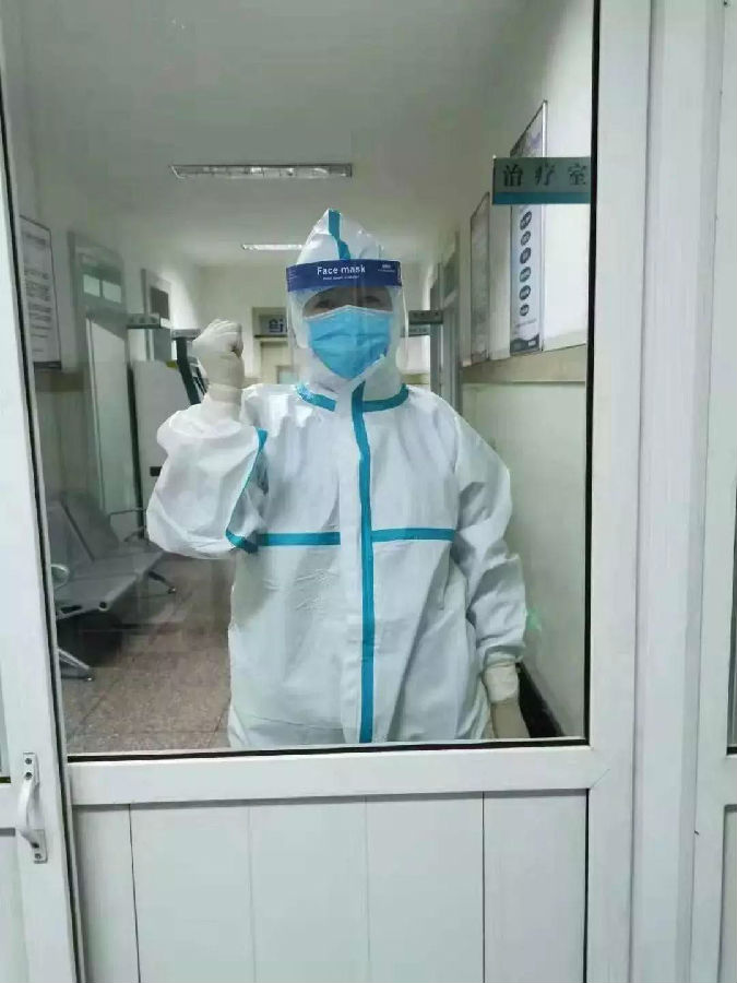 朱瑞娟,宁夏分部石嘴山分校(惠农教学点)2016级护理学本科专业,石嘴山市第一人民医院,血液透析中心护士,现阶段抽调到隔离病房,护理从武汉返宁处于医学观察期的人,以及许多和确诊病人有密切接触的人。