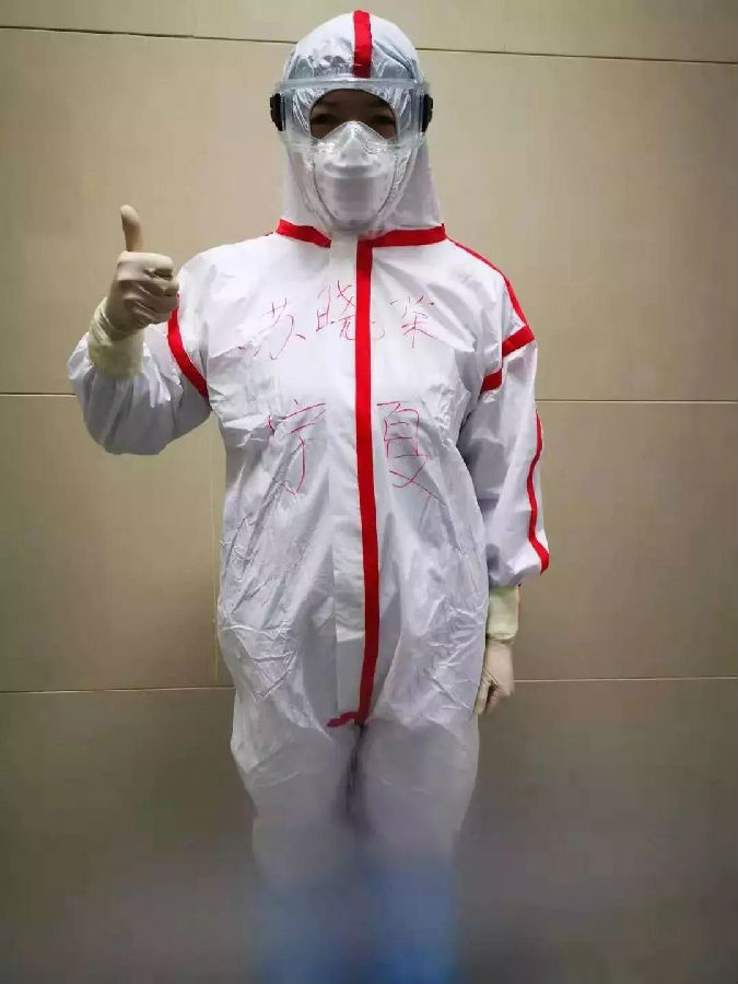 苏晓荣,宁夏分部吴忠分校,2019年秋季护理学本科专业毕业,宁夏吴忠市人民医院重症医学科护士,主动请缨支援武汉,凭借丰富的临床护理经验从报名的284名护理人员中脱颖而出,并于1月28日随宁夏吴忠援鄂医疗队奔赴湖北襄阳市中心医院东津院区ICU工作。每天负责所分管病人的所有治疗与护理,由于ICU病区病人多为危重症,所以,她必须24小时坚守。