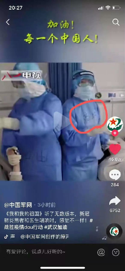 为了打赢疫情防控阻击战,国家开放大学重庆分部继续教育学院开放教育2019春护理学本科学生高巧、2019秋护理学本科学生黄舒成为陆军军医大学医疗队的队员首批驰援武汉,至今仍然奋战在抗“疫”最前沿——武汉金银潭医院。她们24小时待命,随时准备进病房,睡觉也时刻保持着警觉状态。为让大家充满信心抗击病魔,她们在防护服上写下了“加油”字样。她们得知病患们喜爱唱歌,就和他们一起在病房里唱起了《我和我的祖国》。她们用歌声和乐观精神感染病人和其他工作人员:要相信我们强大的祖国,大家一起努力,一定能战胜病魔。