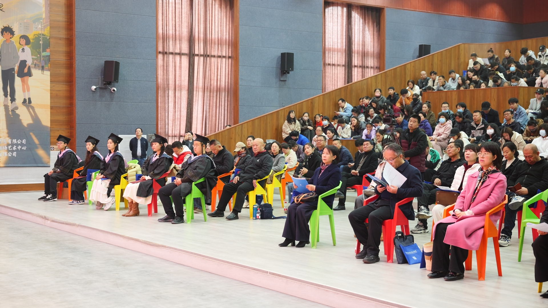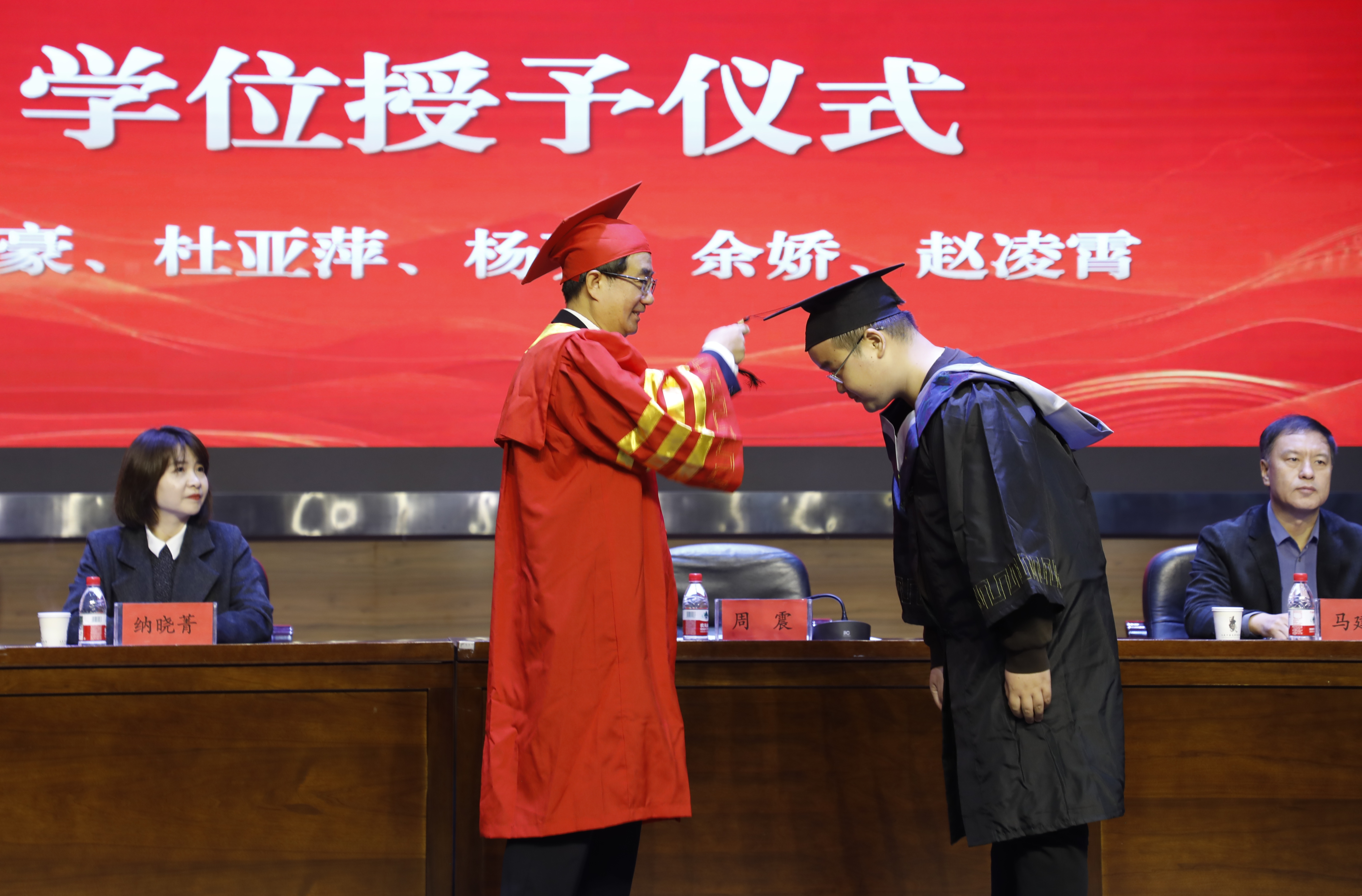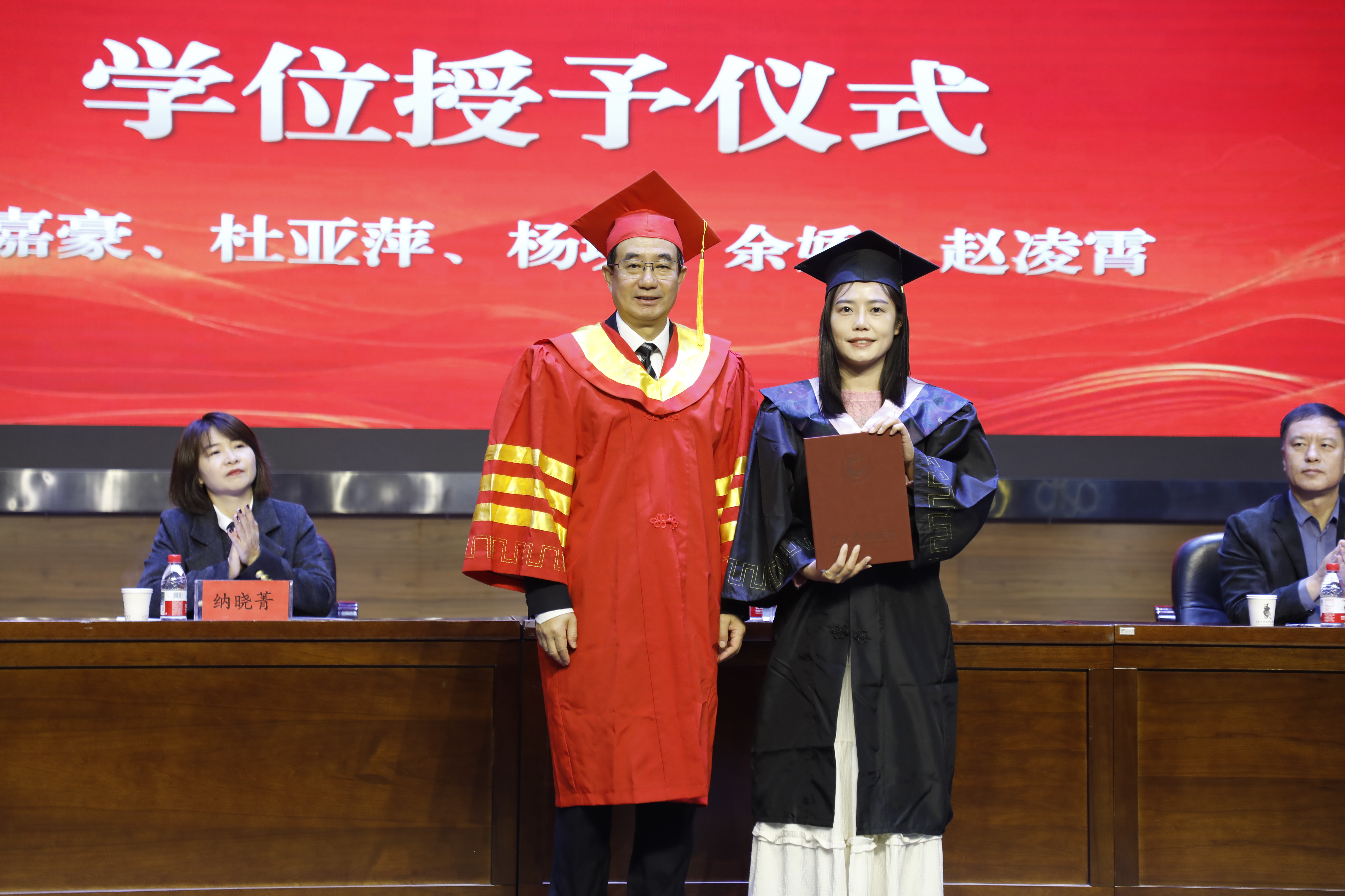 典礼在庄严的国歌声中拉开帷幕。学校纪委书记马建荣宣读了《国家开放大学关于授予2025年春季本科毕业生学士学位的决定》,校长周震为获得学士学位毕业生代表拨苏正冠并颁发证书。
