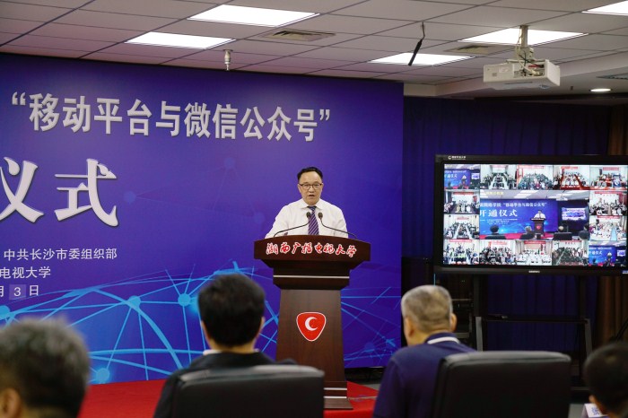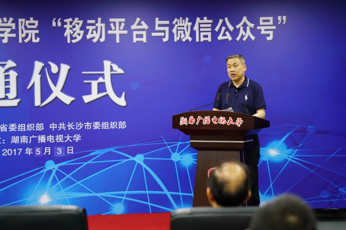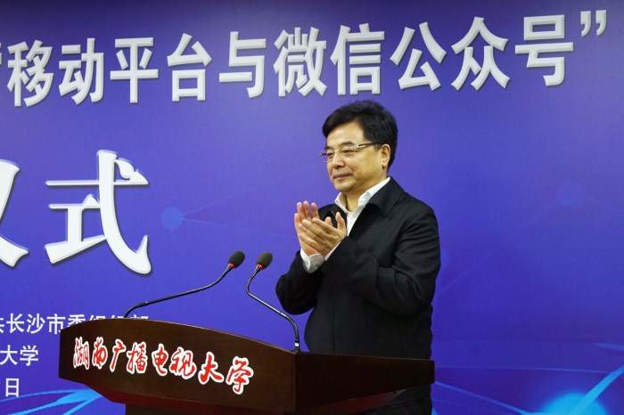 5月3日上午,湖南省干部教育培训网络学院移动平台与微信公众号在湖南电大正式开通,省委常委、省委组织部部长王少峰出席仪式,宣布湖南省干部教育培训网络学院移动学习平台与微信公众号开通。