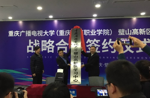 3月14日,重庆电大与重庆璧山高新区签订战略合作协议,并同时为重庆电大璧山高新区学习中心授牌。