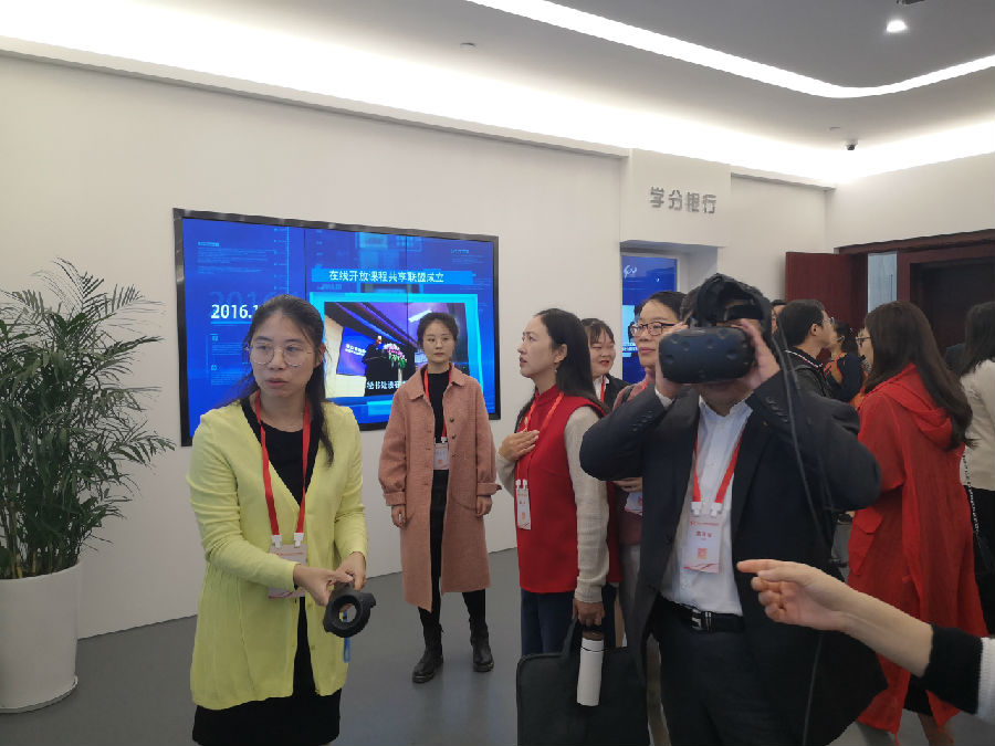 在乐学港,学习不再局限于课堂授课的传统形式,而是利用高科技手段,打造引人入胜的学习新体验,体现了现代信息技术与远程教育教学的深度融合:利用VR技术为学生提供虚拟实践学习环境,加深和巩固知识的掌握;利用幻影成像技术,依托学校海量远程教育资源进行呈现;利用实景模拟,为来访者设置有趣的思政闯关答题,以提升思政教育的趣味性与吸引力;手机端“浙开乐学港”也已开通启用,通过线上线下相结合,充分提高优质资源的利用率,最大程度地发挥乐学港的使用效益。
