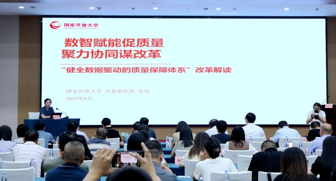 国家开放大学质量监控部部长金琰以“数智赋能促质量 聚力协同谋改革”为题作报告,对“健全数据驱动的质量保障体系”改革进行了解读。