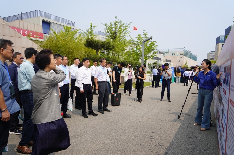 开幕式后,与会嘉宾共同参观了山东省终身教育成果展。此次展览特设山东开放大学展区,充分展示了学校开放教育、成人教育、村(社区)干部专科学历教育、社区(老年)教育、社会培训五大业务板块在服务全民终身学习方面取得的成绩,与会嘉宾纷纷驻足聆听讲解,观看展板。学校全程参与本次活动周相关工作,具体负责主题宣传片制作、线上展览内容设计、线下展览内容审核与设计、现场支持服务等。