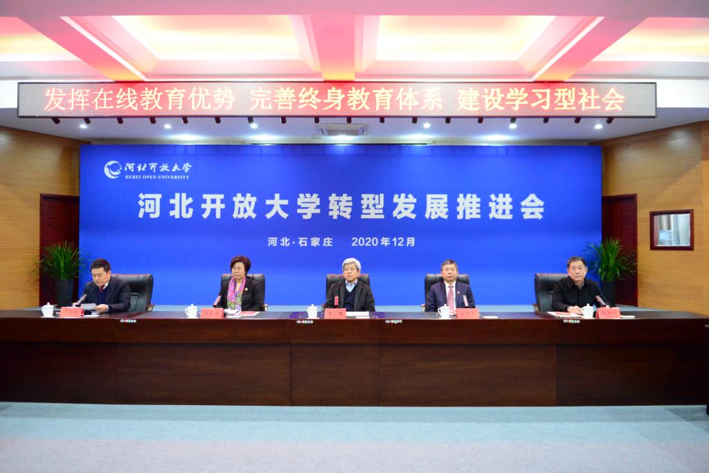 2020年12月19日,河北开放大学转型发展推进会在学校终身教育大讲堂举行,会议采用远程视频会议的方式举行,大讲堂设主会场,各设区市广播电视大学云教室设分会场。