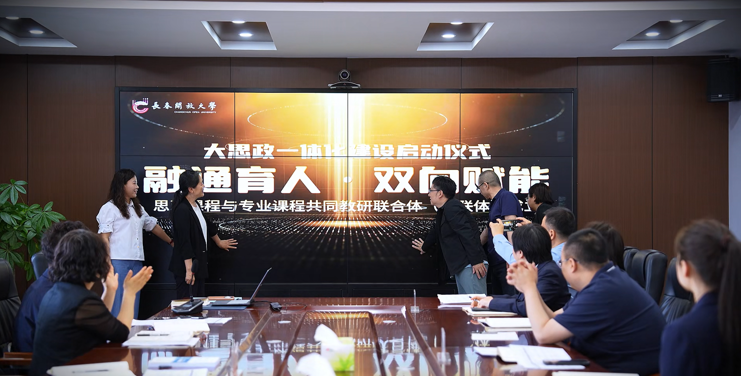 最后,张辉副校长郑重按下象征合作与启航的启动键,思政部与文法系、理工医药系、经管系共同拉开了长春开放大学“大思政一体化”建设的序幕。这标志着“思政课程与专业课程共同教研联合体”(教联体)正式成立。