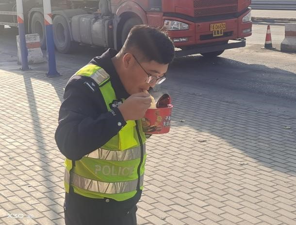 石嘴山分校2019级法学本科学员李松涛站在244国道高仁疫情检查点,下午四点才开始匆忙的午餐,他用实际行动践行着“疫情就是命令,防控就是责任”的使命,用公安精神筑起保护石嘴山人民的第一道防线。