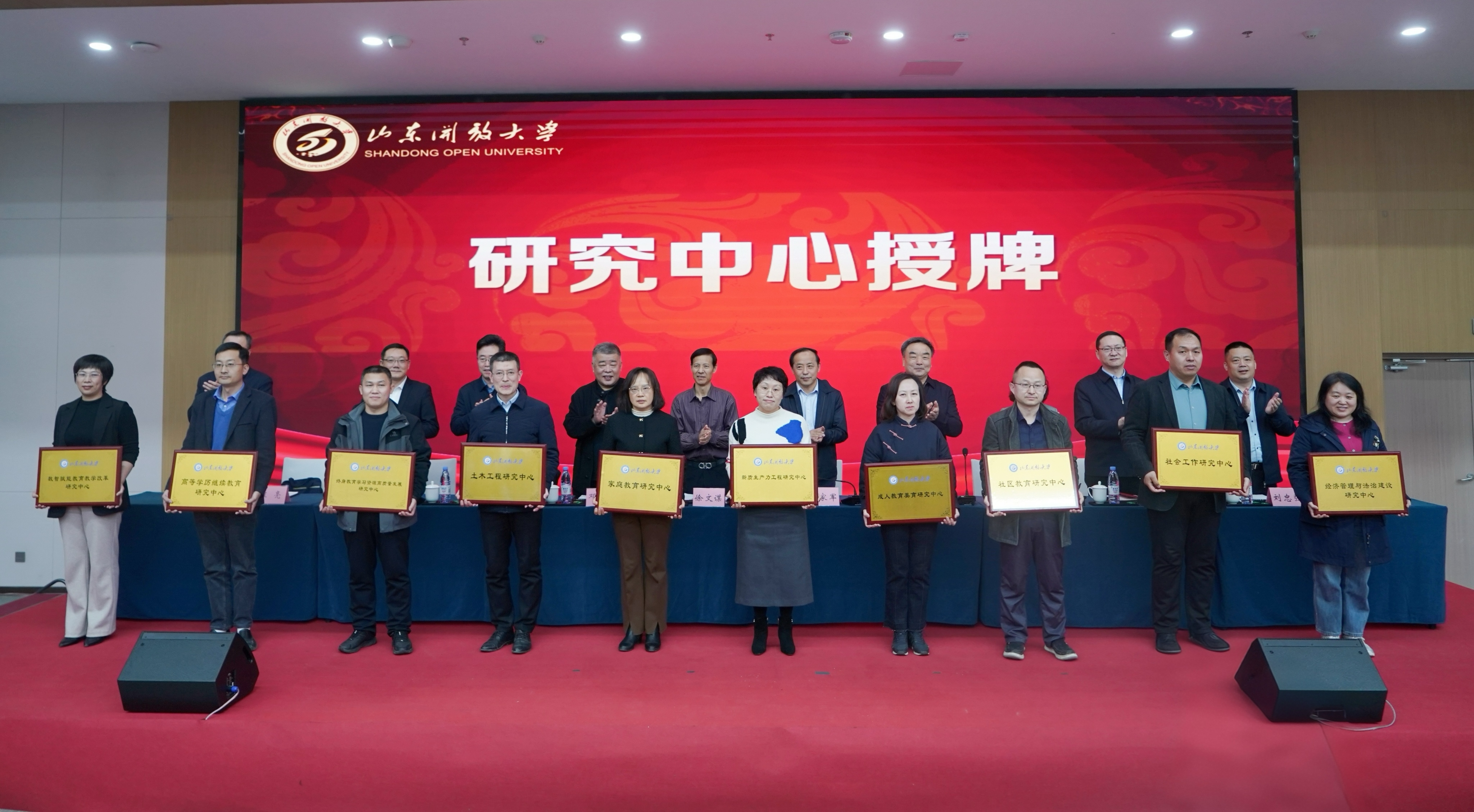 邓俊庆、徐文谋,丛培军、司家军分别为山东开放大学终身教育研究院和数智教育研究院揭牌。司家军为山东省教育厅原二级巡视员、山东省成人高等教育研究会常务副理事长张士瑞,山东联通副总经理林军,浪潮软件股份有限公司党委书记、董事长赵绍祥,新华三集团山东数智业务总经理夏军锋,赛尔网络有限公司山东分公司总经理刘保太,曲阜师范大学基础教育课程研究中心主任二级教授、博士生导师柳士彬六位特邀专家代表颁发了聘书。与会领导为数智赋能教育教学改革研究中心、高等学历继续教育研究中心、终身教育学习资源高质量发展研究中心、土木工程研究中心、家庭教育研究中心、新质生产力工程研究中心、成人教育美育研究中心、社区教育研究中心、社会工作研究中心、经济管理与法治建设研究中心等十个研究中心授牌。
