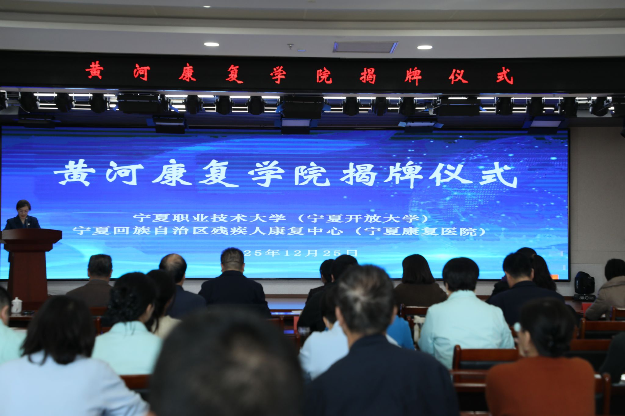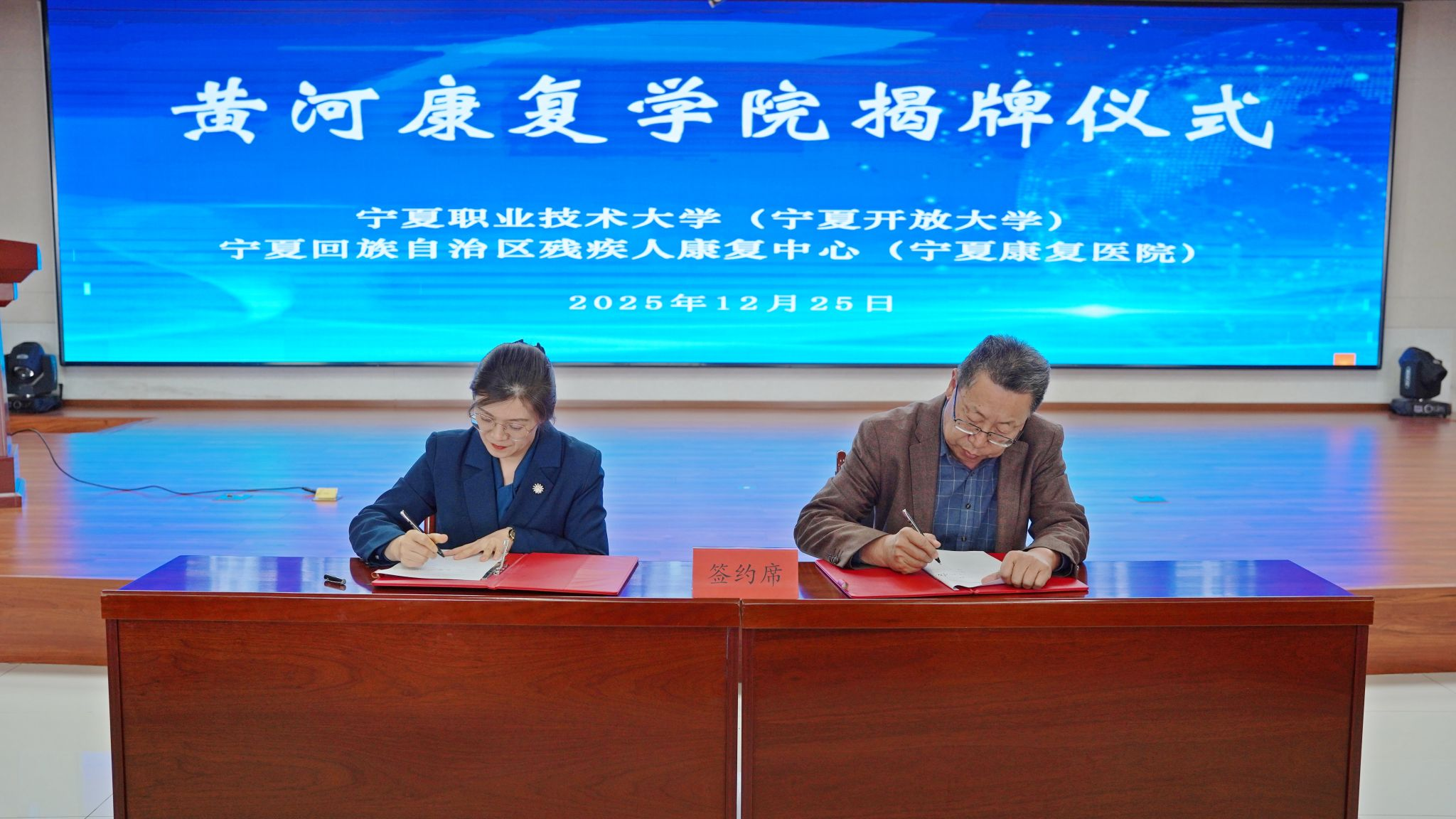 为深入落实黄河流域高质量发展先行区战略,深化产教融合,推动宁夏残疾人康复事业发展。近日,宁夏分部与宁夏残疾人康复中心举行了“黄河康复学院”揭牌仪式。