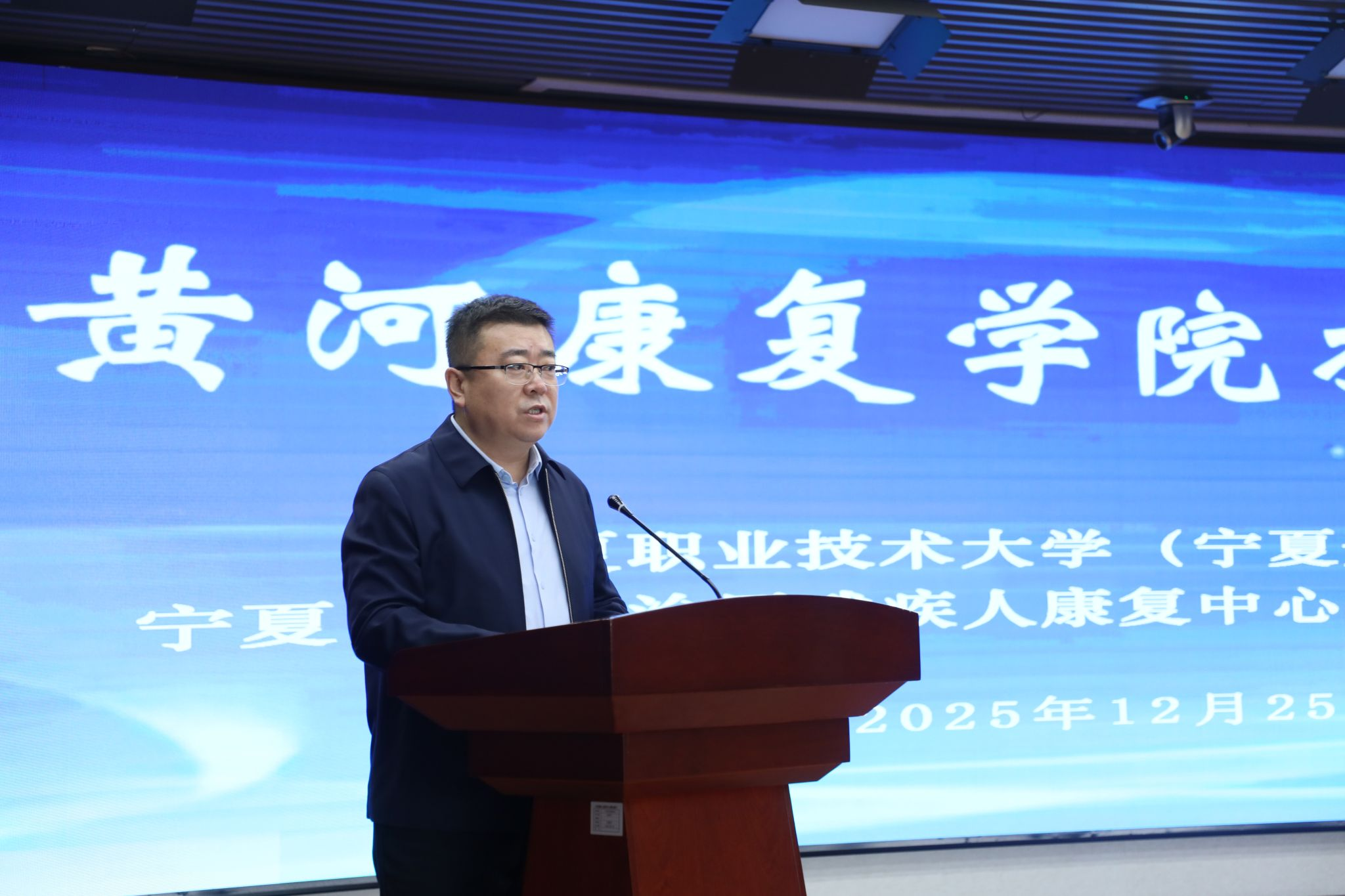 陈灿在致辞中表示,学院的成立既是自治区残疾人康复事业与开放教育、职业教育融合发展的大事,也是我校服务地方、协同育人的重要实践,标志着我校在“医教协同、产教融合”道路上迈出关键一步。为推动学院建设落地见效,后续我校将与宁夏残疾人康复中心紧密携手,从共建人才培养体系、共促师资队伍建设、共推科研与社会服务、共担社会公益责任四个维度,开展多层次、多形式的康复人才联合培养工作。