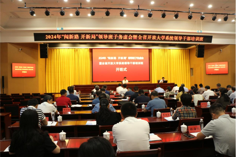 近日,2024年“闯新路 开新局”领导班子务虚会暨全省开放大学系统领导干部培训班在江西靖安开班。江西开放大学全体校领导,各设区市开放大学、产业与乡村振兴学院负责人以及学校各部门、单位主要负责人齐聚一堂,共学共研党的二十届三中全会精神,结合学校转型发展实际研究贯彻落实的具体措施。