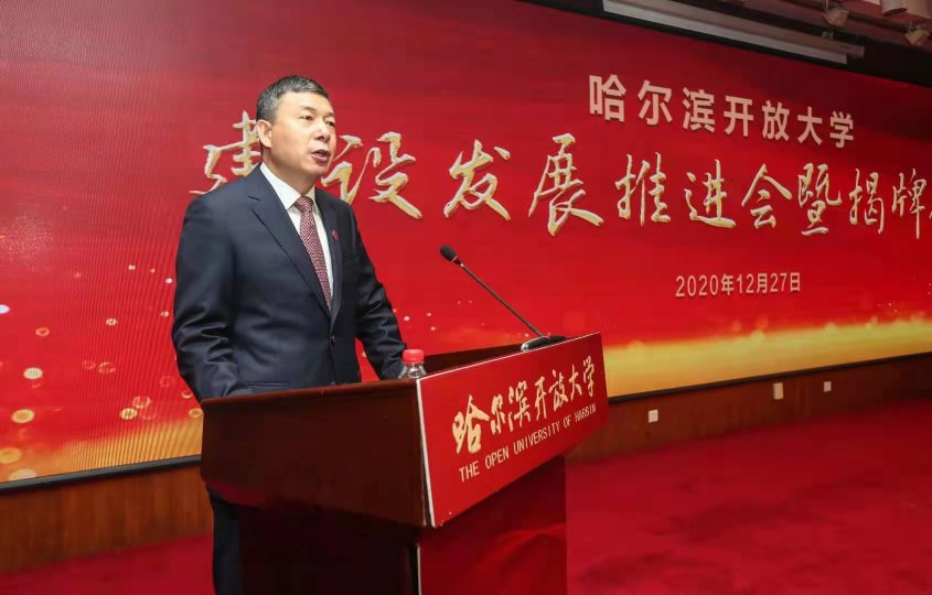 国家开放大学党委书记、校长荆德刚指出,哈尔滨广播电视大学的更名转型是《国家开放大学综合改革方案》在哈尔滨落地生根结出的硕果。哈尔滨广播电视大学办学60年来,累计培养本专科应用型人才34万余人,解决了三代人的学历补偿问题,培养了大批哈尔滨改革开放所需的人力资源,积累了终身学习的教育经验,探索了新型高等教育发展之路,为哈尔滨经济社会发展做出了贡献。他强调,更名后的哈尔滨开放大学要积极主动适应数字化、智能化、终身化、融合化教育发展趋势,做好转型发展;要贯彻好教育部《国家开放大学综合改革方案》,建好四个平台——服务哈尔滨终身教育的主要平台、在线教育的主要平台、灵活教育的平台和对外合作的平台。他希望哈尔滨开放大学站在新的发展起点,紧紧围绕高质量发展主题,开拓创新,不断进取,在黑龙江省域内积极发挥示范性、引领性、创新性和实验性作用,取得更多更好成绩,向建党一百周年献礼。