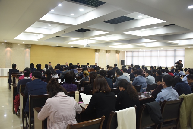 张方明、王宏宁分别作了表态发言。学校领导班子成员、副处级以上干部、副高级以上专业技术人员参加会议。