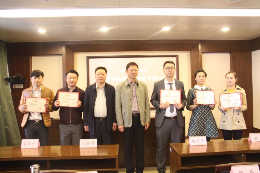 经过一个小时的激烈角逐,最终评选出首届学生英语口语大赛一等奖2名、二等奖3名,杰出指导教师6名。大连电大直属学院、长海分校、甘井子分校获得优秀组织奖。于国喜为杰出指导教师和优秀组织单位颁发了证书和牌匾,刘西平为获奖选手颁发了证书。