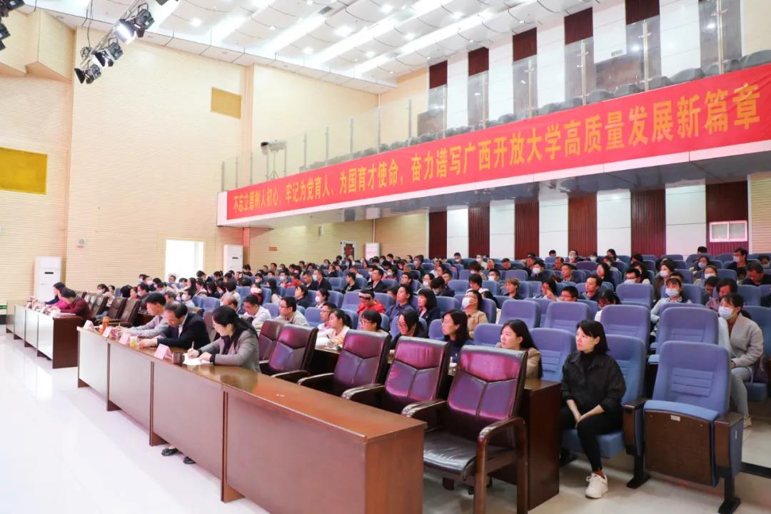 为深入学习贯彻2021年全国两会精神,3月15日,广西开放大学召开传达贯彻全国两会精神会议。党委书记周鸿传达学习习近平总书记在全国两会上的重要讲话精神和全国两会精神,部署学校贯彻落实工作。校长王兴辉主持会议。学校领导罗之勇、陈建新、邓艳葵、杨雄、黄美娟、龙雪津以及全体教职工参加会议。