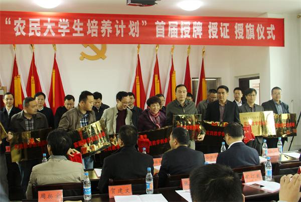 启动仪式上宣读了《关于全市“农民大学生培养计划”“三授”活动正式名单的通知》,全市首批授牌“农民大学生培养计划”“实践教学创业基地”23个,聘请“土专家、田秀才”24名,为全市12个县市(区)志愿服务队授旗,正式成立农民大学生“志愿服务者”队伍。