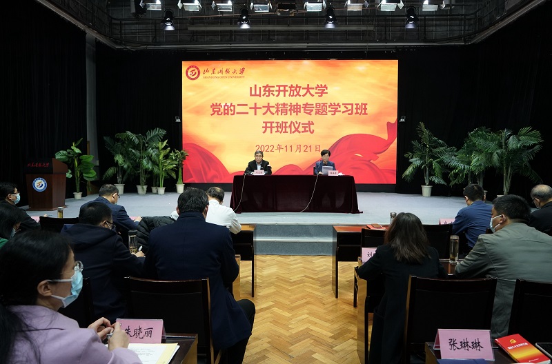 为深入学习贯彻党的二十大精神,按照山东开放大学党委关于党的二十大精神专题学习培训工作有关要求,2022年11月21日上午,学校举办党的二十大精神专题学习班开班仪式。党委书记刘龙海出席开班式并作动员讲话,党委副书记陈英芳主持开班式。