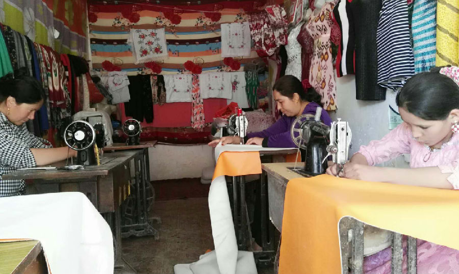 姚新霞带领村民共建了7个农民专业合作社,带动200余人就业。“我从来不相信什么懒洋洋的生活,我向往的生活是通过勤奋和努力实现更多的人生目标,那样的生活才活的珍贵有价值”,这是工作队在走访10村3组一家不足15平米的缝纫店,与店主萨艾提•阿卜杜萨塔尔交流时听到的。缝纫店虽小,但墙上挂满了做好的成品衣服和布料,样式新颖,来这里做衣服的顾客络绎不绝,店主的设计和手艺得到老百姓的认可。萨艾提•阿卜杜萨塔尔说:“现在客户的需求量大,但是人少,设备少,不能及时满足需要”。听了她的一席话,工作队立即帮助她申请了缝纫合作社,并向乡里申请了2.5万元手工业设备。“现在的收入每月可以达到2000元以上,比去年高了一倍”,萨艾提•阿卜杜萨塔尔眉开眼笑地说。像缝纫合作社这样助力村民自主创业、就业的合作社还有很多,工作队紧紧依托农民专业合作社,吸纳贫困家庭劳动力稳定就业,实现产业扶贫、就业扶贫双轮驱动,让村民在自家门口也能有收入。