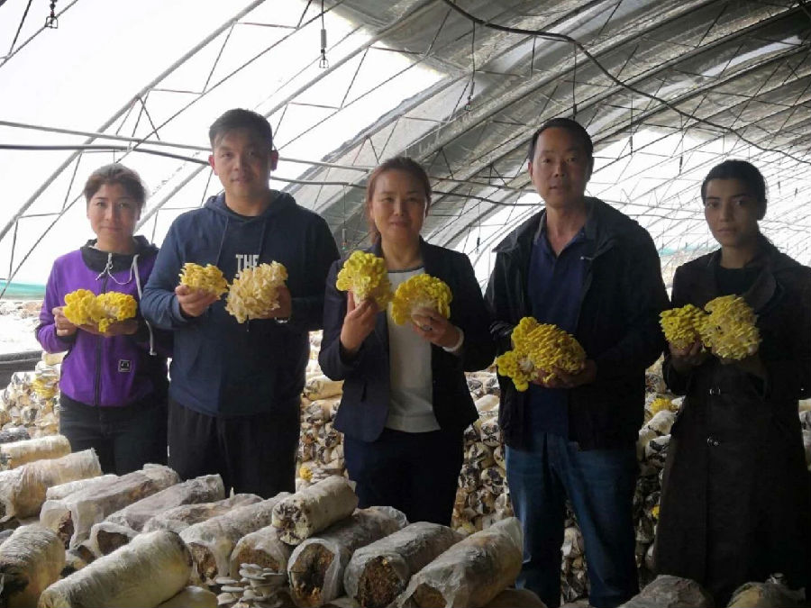 在姚新霞的带领下,10村木耳种植农民专业合作社自2018年9月成立以来,已生产过木耳、榆黄菇、平菇等食用菌菌棒,解决了45名贫困人口的就业问题。但当第一筐蘑菇采摘下来后,给姚新霞带来的不是收获的喜悦,而是如何卖出去的挑战。为了开拓市场,姚新霞带领合作社成员背着蘑菇到英吉沙县县城内的大小饭店挨家挨户推销,在菜市场蔬菜批发店设点,聘请村里做蔬菜生意的村民代销,起早到早市上进行批发……功夫不负有心人,终于打开了英吉沙县的市场,合作社生产的蘑菇因质优价廉、口感好,深受英吉沙县消费者的欢迎。