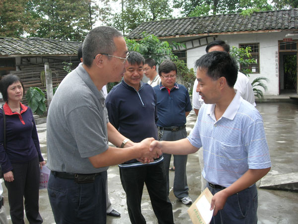 2009年7月,时任中央电大副校长严冰在四川电大党委书记杜幼文的陪同下到绵竹电大汉旺教学点指导灾后重建工作