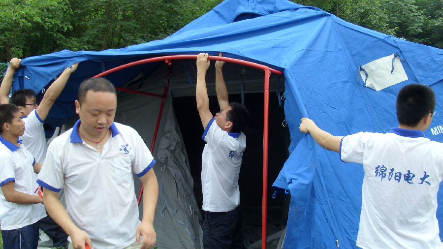 2008年5月,地震第一周,绵阳电大师生展开自救。