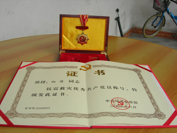 向倩:德阳电大什邡电大英语专业本科2007级在读学员,时任什邡龙居小学教师。2008年5月12日地震时为抢救学生遇难。被中组部追授为抗震救灾优秀共产党员称号、四川省革命烈士。