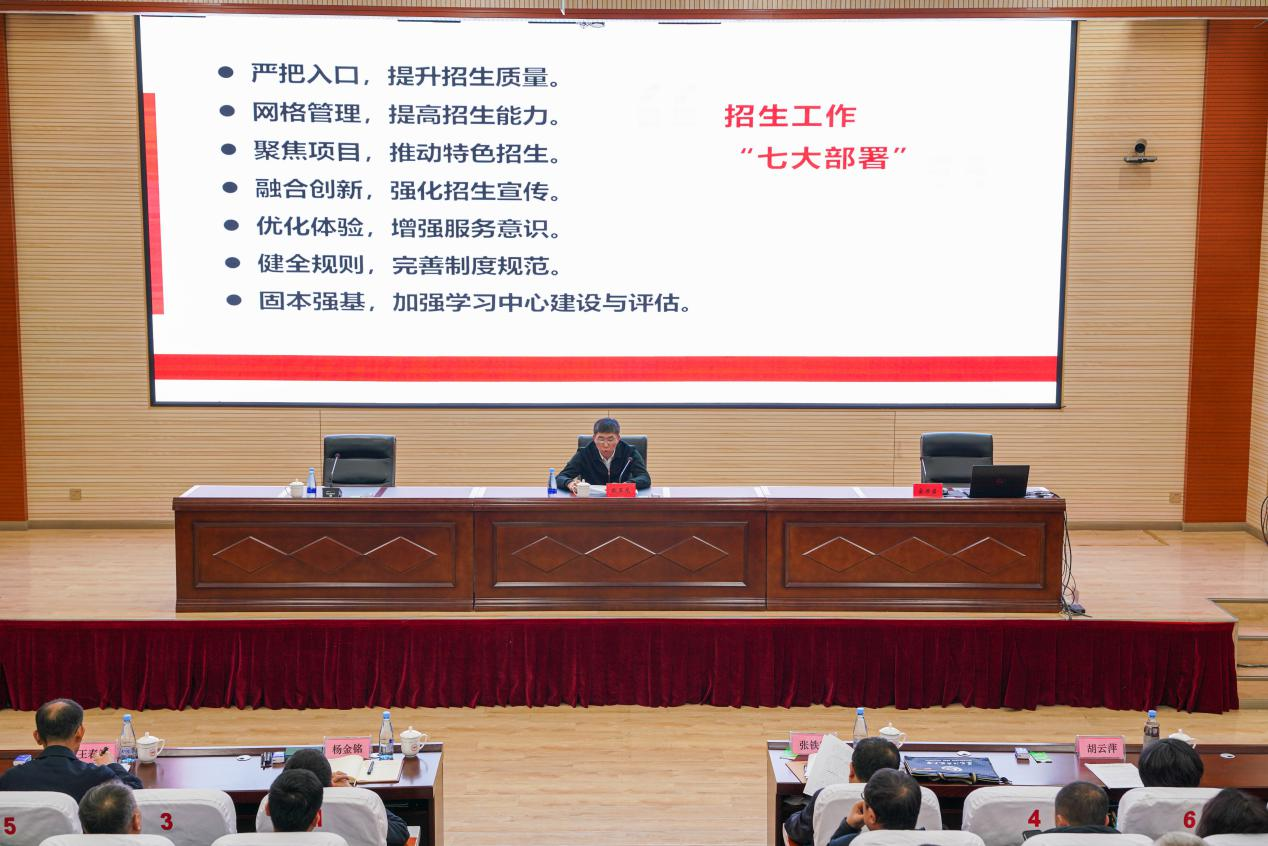 耿玉龙以“凝心聚力 提质增效 奋力谱写黑龙江开放教育招生工作新篇章”为题作年度招生工作报告,并对2026年春季招生任务作出安排,提出严把入口质量、推动特色招生、优化服务体验等七大重点工作。