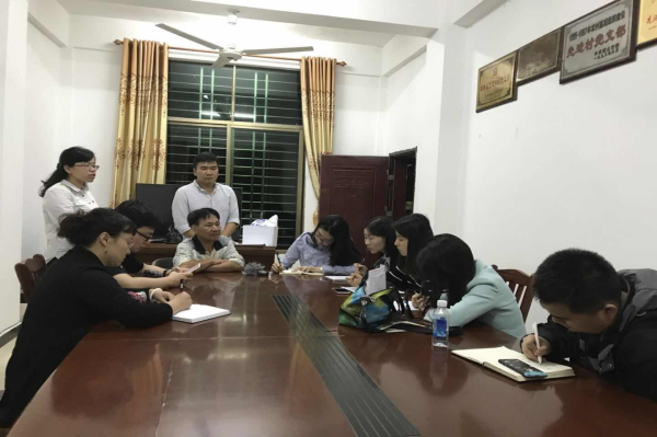 采访团记者在琼山区云龙镇采访电视夜校工作情况