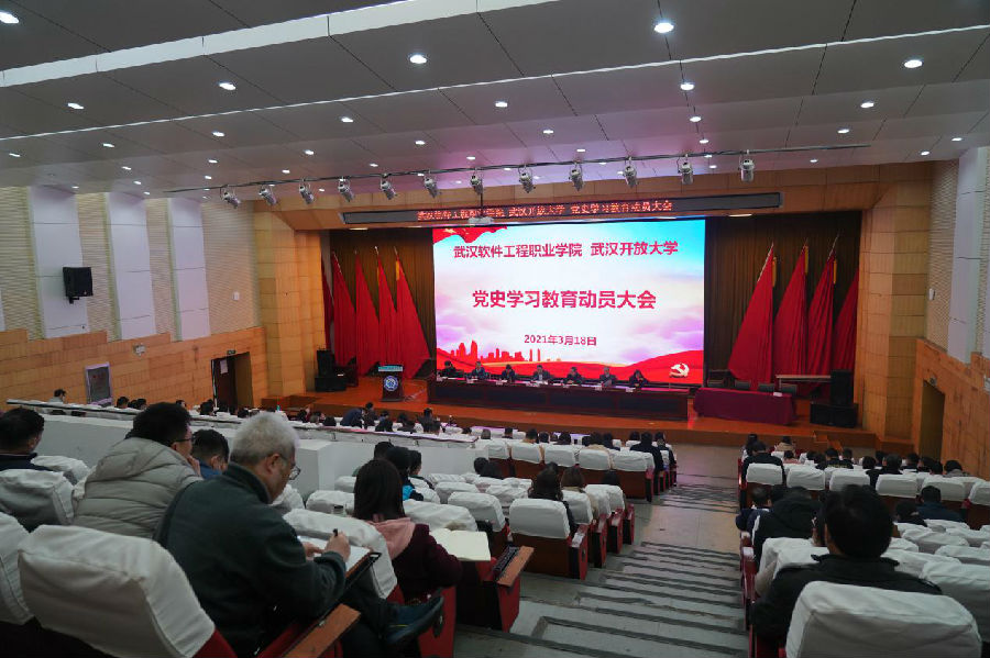 3月18日,武汉开放大学召开党史学习教育动员大会,认真学习贯彻习近平总书记重要讲话精神和党中央决策部署,对全校党史学习教育进行全面动员部署。