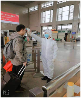 1月26日,汨罗农民大学生黄泽宇在全市公交停运的情况下,主动申请在公交停车场担任值守,吃住值班室,24小时连轴转。2月1日,市里抽调人员担负高铁汨罗东站旅客入口体温检测任务,他主动请缨奔赴“火线”,“报告首长,公交公司党员黄泽宇高铁东站旅客入口体温检测战斗在岗,当天检测旅客952人次,情况正常。”