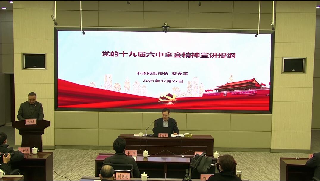 蔡允革从深刻认识总结党的百年奋斗重大成就和历史经验的重大意义,深刻认识党的百年奋斗的初心使命和重大成就,深刻认识中国特色社会主义新时代的历史性成就和历史性变革,深刻认识党的百年奋斗的历史意义和历史经验,深刻认识以史为鉴、开创未来的重要要求,从党的百年奋斗历程中汲取智慧和力量等6个方面,对党的十九届六中全会精神进行了系统阐述。宣讲中,蔡允革结合习近平总书记对重庆提出的系列重要指示要求,立足加快内陆开放高地建设、全力推动西部金融中心建设的生动实践,深入解读了党的十九届六中全会思想精髓。