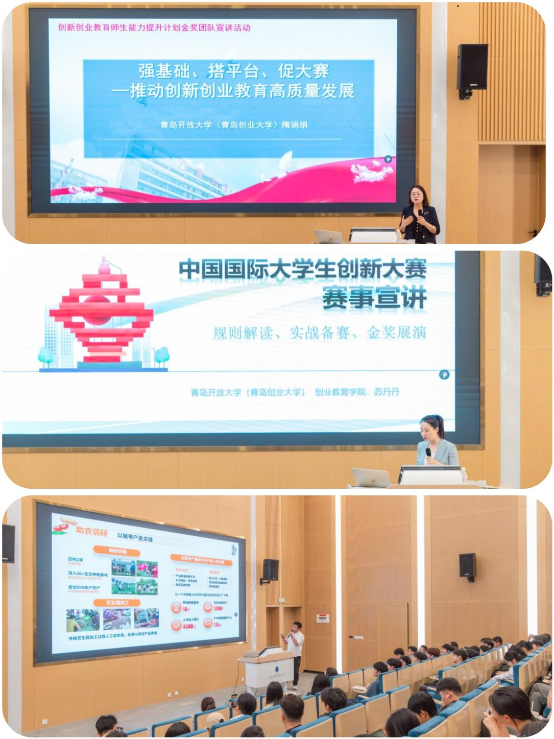 近日,由山东省教育发展服务中心主办的山东省创新创业教育师生能力提升计划金奖团队宣讲活动在山东外国语职业技术大学举行。青岛开放大学(青岛创业大学)创新大赛国金团队受邀参加并作辅导宣讲。活动以线上线下相结合的方式进行,4000余名相关创业指导教师与学生参加活动。