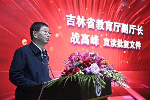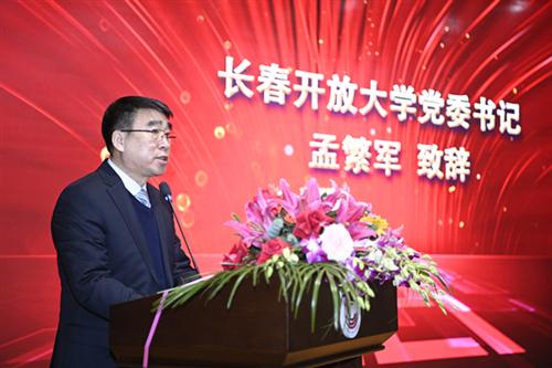 战高峰宣读了吉林省政府关于学校更名的批复文件,长春开放大学党委书记孟繁军致辞,刘向虹讲话。刘向虹、贾丽娜共同为长春开放大学揭牌。