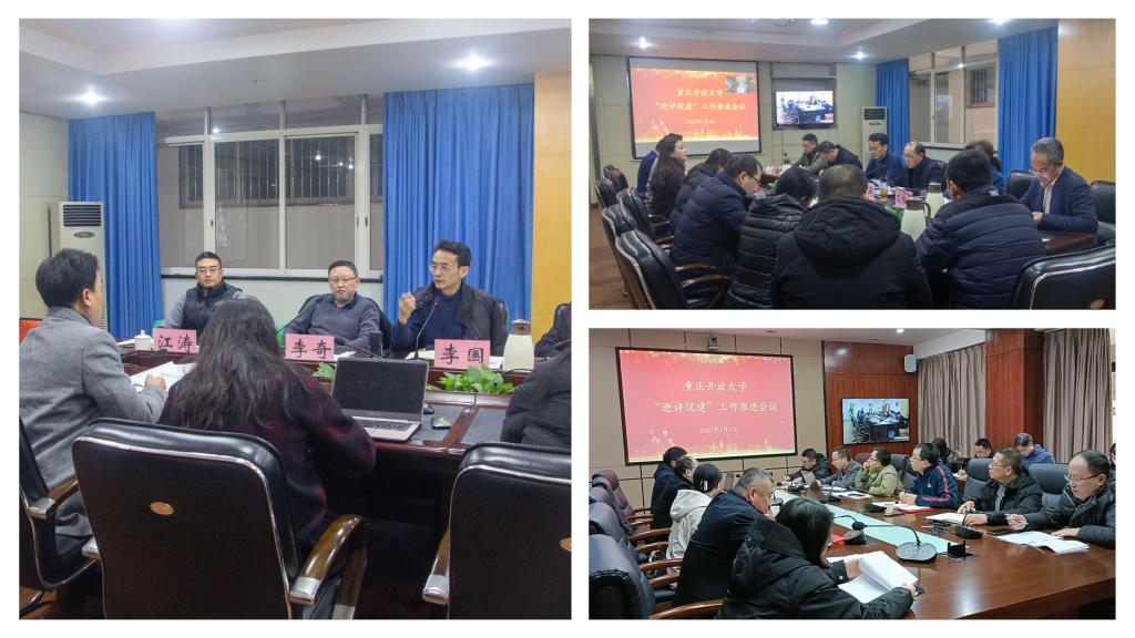 李国在会上充分肯定学校2021年“迎评促建”取得的成效,指出全校上下要齐心协力、凝心聚力、攻坚克难,为办学评估最后冲刺打好基础。他强调,要加强对基层办学单位评估结果的运用,优化办学体系设置标准,将基层办学水平评估与基层学院建设有机结合起来,完善学校办学体系,落实落细评估任务,制定详细工作方案,明确责任主体、时间节点,打表推进,持续巩固并扩大“迎评促建”现有成果,从“迎评促建”全面转战迎接评估相关准备工作之中。