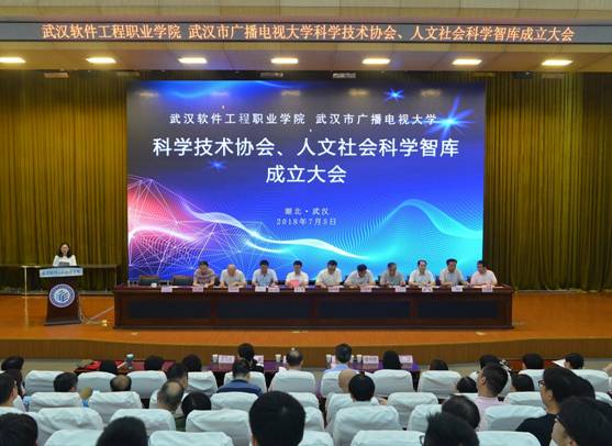 2018年7月5日下午,武汉电大召开科学技术协会、人文社会科学智库成立大会。武汉市科学技术协会党组成员、副主席张若光,湖北师范大学副校长、教授、博士生导师余翔,武汉工程职业技术学院校长雷振德,武汉纺织大学教授、博士生导师王金华,武汉市科协企事业部部长宋卫华,武汉市科学技术协会企事业部科长曾波,武汉职业技术学院外语学院院长、教授宁毅,武汉市社科院副研究员操琳姣,武汉临界管理咨询有限公司总经理涂纪文及全体校领导出席,校科协会员、人文社会科学智库校内专家、学生代表参加会议。大会由武汉电大校长马蜂主持。
