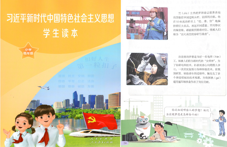 《读本》由教育部组织编写,是学生学习习近平新时代中国特色社会主义思想的重要教材,是推动大中小学思政课一体化建设的重要载体。《读本》小学低年级版本讲述了大国工匠、全国劳模、集团职工竺士杰等劳动者代表的人生梦想,以及他们为实现梦想而努力奋斗的先进事迹。