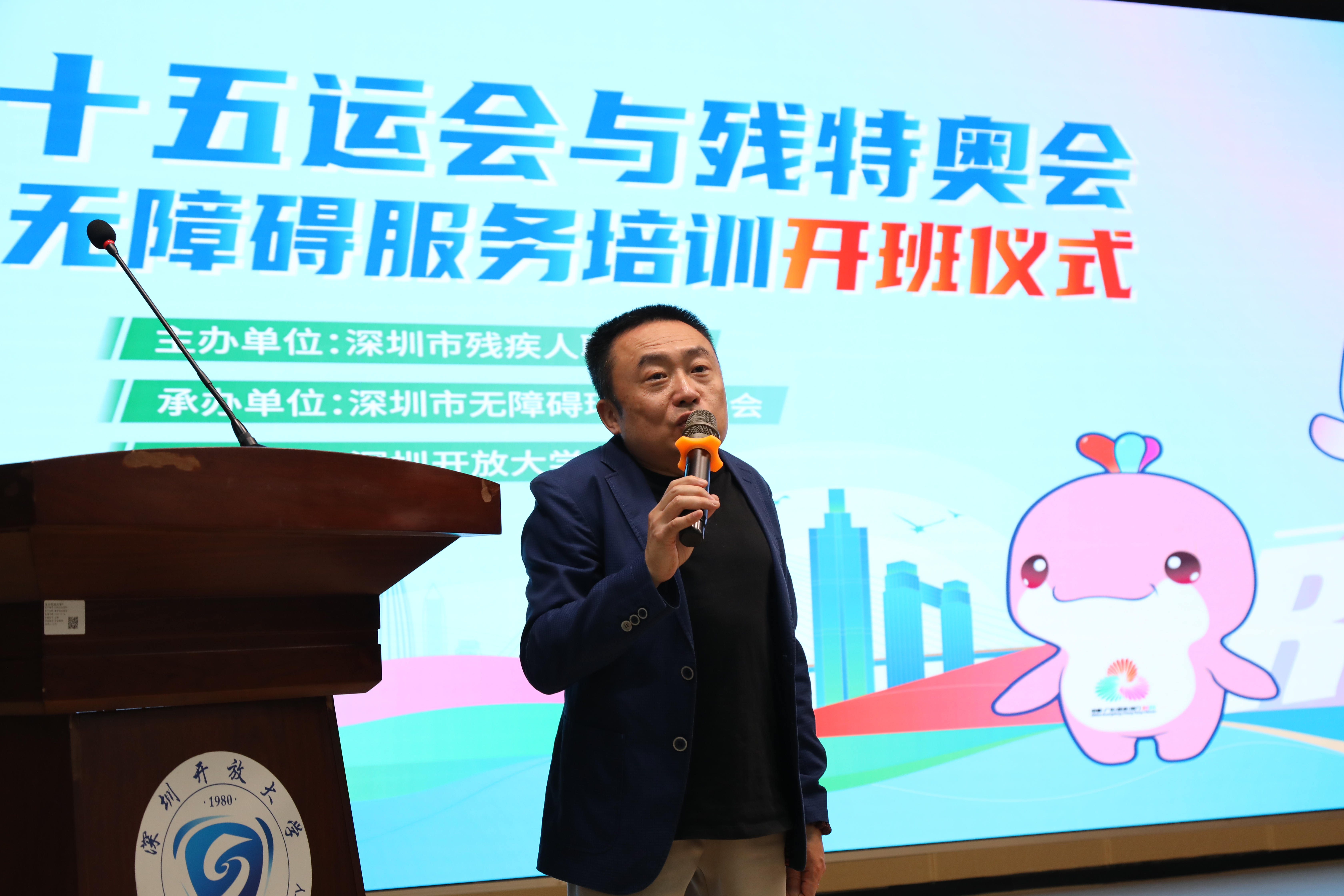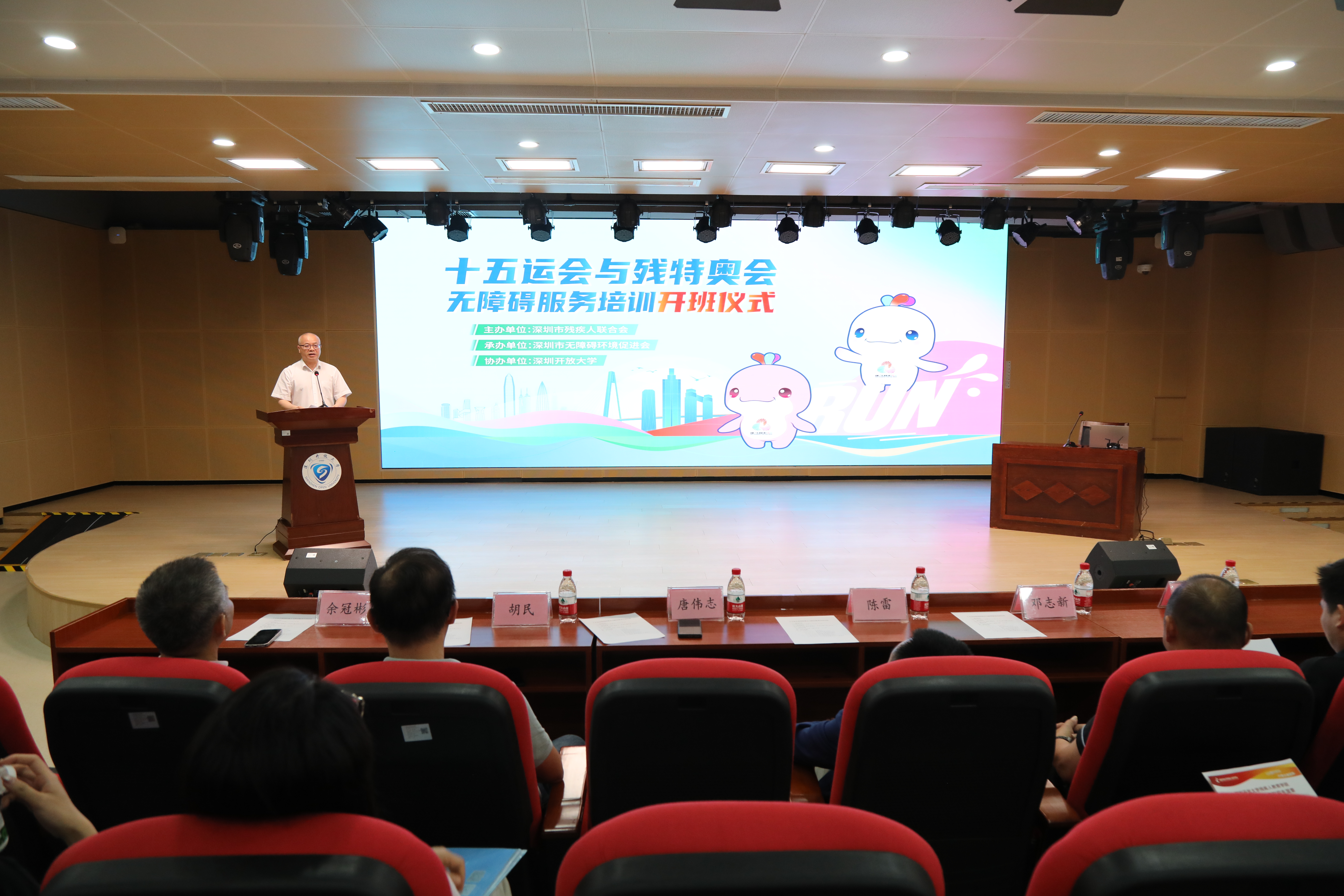 4月18日,由深圳市残疾人联合会主办、深圳市无障碍环境促进会承办、深圳开放大学协办的第十五届全国运动会和全国第十二届残疾人运动会暨第九届特殊奥林匹克运动会(以下简称“十五运会和残特奥会”)无障碍服务培训顺利开幕。深圳市残联创建无障碍城市办公室副主任陈雷,学校党委委员、副校长唐伟志出席开幕式。