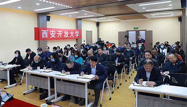 学习百年党史,激发奋进力量。3月30日上午,西安开放大学召开党史学习教育动员大会,深入贯彻落实党中央、省委、市委党史学习教育动员大会精神和工作安排,安排部署学校党史学习教育工作。校党委书记李彬,校党委副书记、校长赵丽玲,校党委委员、副校长宋军,校党委委员、副校长李福海,校内中层管理四级岗以上干部以及各党支部支委参加了会议。会议由赵丽玲主持。